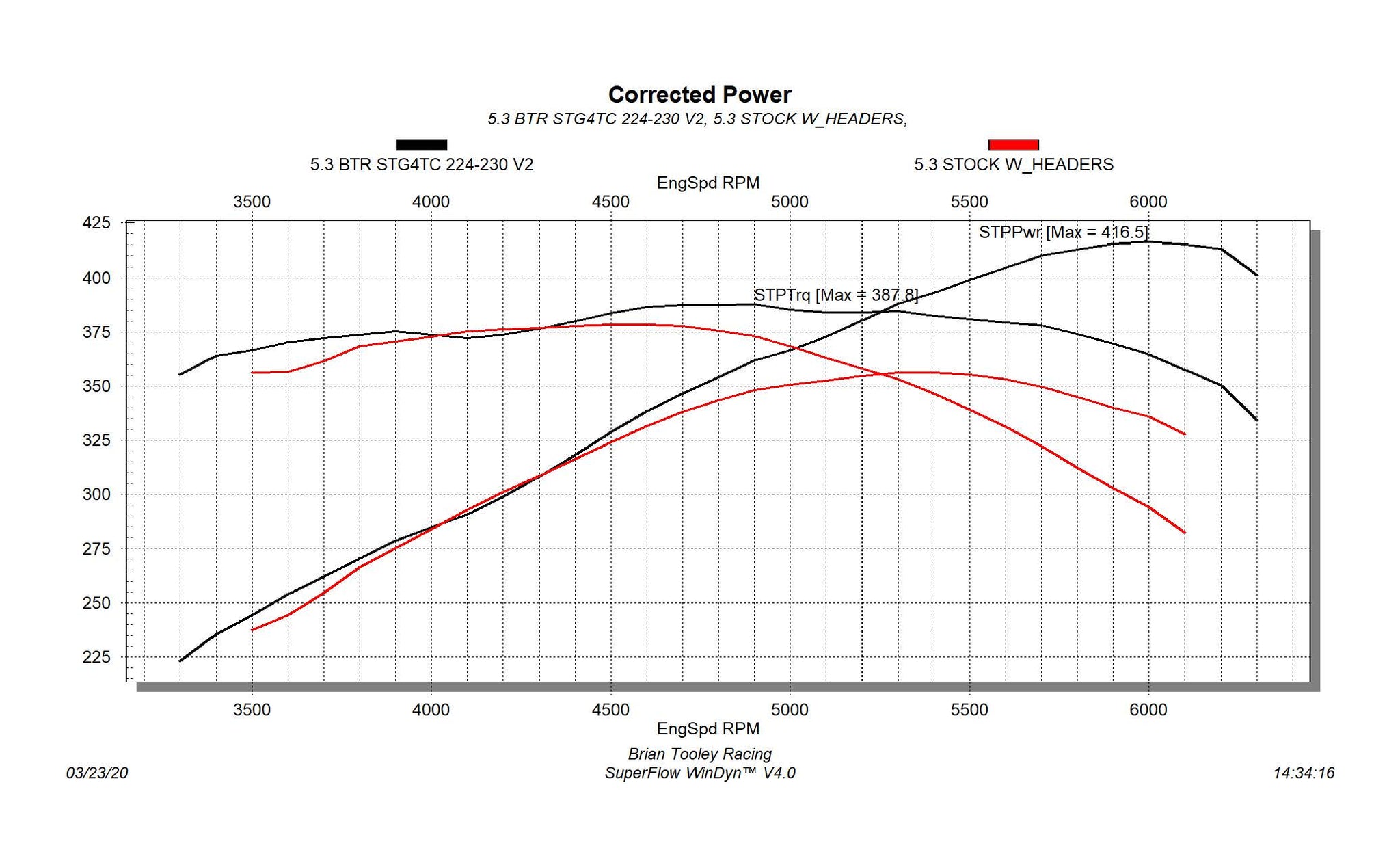 The dyno test below was conducted on a stock 5.3 with a truck intake, valve spring upgrade, and longtube headers. Stock cam VS our cam.